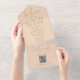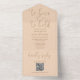 Esta minimalista invitación a la boda todo en uno presenta una tipografía elegante con un suave fondo de melocotón. La invitación incluye una tarjeta RSVP perforada con el código QR de su sitio web boda. Diseñado por Thisisnotme©