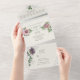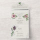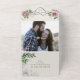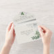Celebra tu amor con esta romántica y polvorienta invitación a la boda todo en uno, de color agua, vegetación exuberante y un suave motivo botánico. Diseñado para una elegancia sin esfuerzo, incluye secciones de detalles y RSVP incorporadas, además de espacio para una foto en la parte trasera, perfecta para bodas de inspiración natural o boho. Por favor, tenga en cuenta que esta invitación "todo en uno" requiere un sobre separado para el envío de correo. Recomendamos emparejarlo con un sobre A9 estándar (5,75" x 8,75") para el mejor ajuste.