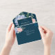 Invitación Todo En Uno Pastel azul turbio Hidráneas rosadas Boda floral