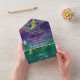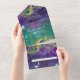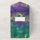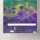Este elegante y festivo diseño está hecho con plumas de pavo real pintadas a mano con acuarela adornadas con joyas de diamante de diseño gráfico sobre un profundo y rico brillo de bokeh, luces brillantes en el fondo violeta, azul, agua y verde. Esta es una invitación "todo en uno" con una lágrima de rsvp para enviarte por correo. Cambie fácilmente el texto utilizando los campos de plantilla proporcionados. Estilo tradicional clásico y atemporal con un toque moderno para una elegancia de corbata negra.