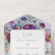DISPONIBLE CON UN CÓDIGO QR O SIN OPCIONES PARA CENAR. Este diseño presenta un monograma de las iniciales de la pareja en un cuadro de texto blanco. La caja está rodeada por un bonito surtido de flores de color azul perwinkle, azul verdoso, marrón y acuarela rosa. El fondo es un perwinkle acuático. Otra disposición floral de fondo resalta la tarjeta de respuesta. Creado por Simply Farmhouse Press,