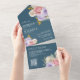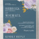 Invitación Todo En Uno Pink Purple Rose Floral QR Code Dusty Blue Wedding