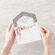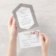 This convenient all-in-one invitation format includes the main invitation and RSVP section in a single piece, making it easy to personalize, print, fold, and mail. Its streamlined layout is ideal for couples seeking a cohesive look without the need for multiple cards, while still maintaining an elegant presentation.