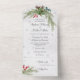 Presentamos esta exquisita Invitación a la boda de Navidades todo en uno, diseñada para infundir el espíritu alegre de la temporada navideña en su día especial. Con elegantes brotes de pino y un fondo nevado, esta invitación capta la esencia de un boda invernal maravilloso.