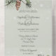 Captura la magia de un maravilloso país invernal con esta exquisita invitación a la boda todo en uno, cuidadosamente diseñada para encarnar la elegancia y el encanto de tu día especial. Que el encanto de las ramas de pino, los conos de pino, el holly y la caída de la nieve teje la historia de tu amor en un tapiz mágico que dejará una marca indeleble en los corazones de todos los que la reciben. Las invitaciones de boda todo en uno son hermosas y prácticas al combinar la invitación de boda con una postal RSVP fácil de quitar perforada. También son rápidos y fáciles de preparar para el correo. Simplemente dirija la invitación, doble el pliegue trasero y selle con los pegatinas claros incluidos. Una vez que sus invitados reciben la invitación, simplemente rompen la tarjeta RSVP perforada y la tiran por correo.