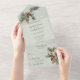 Invitación Todo En Uno Pino verde sabio y holly en nieve