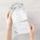 Invitación Todo En Uno PixDezines H2 Dusty Blue Flores Rosas Hortensias