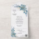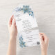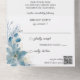 Esta invitación a la boda todo en uno está diseñada para encapsular la encantadora esencia del invierno con elegantes poinsettias azules y doradas que reflejan maravillosamente el romance de tu historia de amor con el encanto de la temporada invernal. Las invitaciones de boda todo en uno son hermosas y prácticas al combinar la invitación de boda con una postal RSVP fácil de quitar perforada. También son rápidos y fáciles de preparar para el correo. Simplemente dirija la invitación, doble el pliegue trasero y selle con los pegatinas claros incluidos. Una vez que sus invitados reciben la invitación, simplemente rompen la tarjeta RSVP perforada y la tiran por correo. La adición del código QR permite a los clientes acceder fácilmente a la página web de su boda para obtener información, incluyendo detalles de recepción y opciones de cena.
