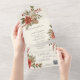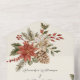 Disfrute de la belleza de un maravilloso paisaje invernal con esta exquisita invitación a la boda "todo en uno", que presenta un impresionante diseño de poinsettias rojas y marfil, con ramos de pino y azulejos de marfil. Esta invitación resume la magia y el romance de tu día especial. Las invitaciones de boda todo en uno son hermosas y prácticas al combinar la invitación de boda con una postal RSVP fácil de quitar perforada. También son rápidos y fáciles de preparar para el correo. Simplemente dirija la invitación, doble el pliegue trasero y selle con los pegatinas claros incluidos. Una vez que sus invitados reciben la invitación, simplemente rompen la tarjeta RSVP perforada y la tiran por correo. La adición del código QR permite a los clientes acceder fácilmente a la página web de su boda para obtener información, incluyendo detalles de recepción y opciones de cena.