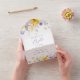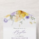 Invite friends and family in style and set the tone for your special day with this elegant baptism invitation. Design features purple and yellow watercolor flowers and greenery on white background.