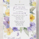 Invite friends and family in style and set the tone for your special day with this elegant first holy communion invitation. Design features purple and yellow watercolor flowers and greenery on white background.