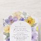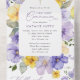 Invite friends and family in style and set the tone for your special day with this elegant first holy communion invitation. Design features purple and yellow watercolor flowers and greenery on white background.