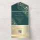 Invitación Todo En Uno QR Code Emerald Gold Floral Wedding