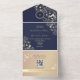 Invitación Todo En Uno QR Code Navy Rose Gold Wedding