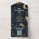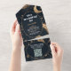 Invitación Todo En Uno QR CodeMidnight Blue Gold Boda Celestial