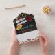 Colorida quinceañera "Save the Date" con decoración floral de temática mexicana y un confetti dorado en las fronteras, con un bonito ilustracion de un descendiente rojo, una bonita rosa roja y un sombrero amarillo con un fondo negro. La parte inferior es el personalizable con una de tus fotos favoritas y tus detalles de fiesta.