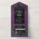 Invitación Todo En Uno Raven negro gótico y Rosas negros morados sin cena