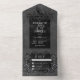 DISPONIBLE CON O SIN CÓDIGO QR O CON O SIN OPCIONES DE SELECCIÓN DE CENAS. Traslade a sus huéspedes a un mundo de oscuridad y encantadora elegancia con nuestra vintage invitación a bodas góticas. El fondo negro profundo y envejecido prepara el terreno para un sorprendente contraste, a medida que el texto en negrita blanco emerge de intrincados cuadros de texto en negro. En el pináculo de esta invitación, un borde gótico tridimensional adornado con un cuervo negro real captura la esencia del misterio y el romance. La carta de respuesta, adornada con dos viñas entrelazadas de rosas negros formando sutilmente un corazón, agrega un toque de encanto dramático. Como flor final, el exterior exhibe un arco gótico tridimensional y un medallón decorativo, asegurando que sus invitaciones a la boda sean una gran primera impresión. Desate la magia y marca el tono para un día de boda inolvidable. Creado por Simply Farmhouse Press.