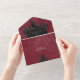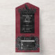 DISPONIBLE CON O SIN CÓDIGO QR O CON O SIN OPCIONES DE SELECCIÓN DE CENAS. Traslade a sus huéspedes a un mundo de oscuridad y encantadora elegancia con nuestra vintage invitación a bodas góticas. El fondo profundo y envejecido del vino de color burdeos prepara el terreno para un sorprendente contraste, a medida que el texto en negrita blanco emerge de intrincadas cajas negras de texto. En el pináculo de esta invitación, un borde gótico tridimensional adornado con un cuervo negro real captura la esencia del misterio y el romance. La carta de respuesta, adornada con dos viñas entrelazadas de rosas negros formando sutilmente un corazón, agrega un toque de encanto dramático. Como flor final, el exterior exhibe un arco gótico tridimensional y un medallón decorativo, asegurando que sus invitaciones a la boda sean una gran primera impresión. Desate la magia y marca el tono para un día de boda inolvidable. Creado por Simply Farmhouse Press.