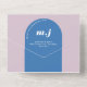 Nuestra mínima y audaz invitación a una boda al estilo retro es perfecta para la pareja de moda a la que le encanta destacar y hacer una declaración audaz. Nuestro diseño presenta una combinación de colores azul y violeta. Las formas simples de arco abstracto y de círculo crean un aspecto audaz con "Lo hacemos". Se muestra audazmente en un tipo de letra blanco grande. El texto en negrita y el estilo retro moderno crean un diseño atrevido y moderno. Diseñado por Moodthology Papery