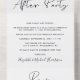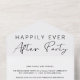 Anuncio de fuga elegante o boda pequeña combinada con una invitación a una recepción después de la boda. "Fiesta Feliz Para Siempre" está escrito en una mezcla de tipografía simple y una letra moderna. Una tarjeta postal de RSVP desprendible proporciona una respuesta conveniente y ecológica sin sobre de sus invitados.