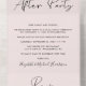 Elegante anuncio de fuga y boda pequeña en rosa claro combinado con una invitación a la recepción después de la boda. "Fiesta Felices Para Siempre" está escrito en tipografía simple y letra moderna. Una tarjeta postal de RSVP desprendible proporciona una respuesta conveniente y ecológica sin sobre de sus invitados.