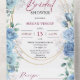 Invitación Todo En Uno Receta de Rosas Blue Bridal Shower
