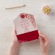 This unique red and blush all-in-one wedding invitation is designed to be eco-friendly, stylish, and budget-conscious. The envelope-style format includes everything in one piece — saving you money by eliminating the need for extra RSVP cards, menus, or additional enclosures.