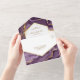 Invitación Todo En Uno Relieve metalizado dorado púrpura de plumas Resume