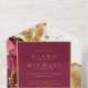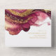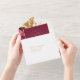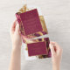 Este elegante conjunto, decorado con impresionantes tonos rojos enológicos, le da un toque refinado a su boda, para que disfrute de los huéspedes con un atisbo de la ostentosa celebración que le espera. Mejorada aún más con el espléndido brillo de los acentos de los purpurinas de oro, la invitación de boda "todo en uno" que se muestra aquí proporciona una plantilla para añadir fácilmente sus propios detalles de evento y los requisitos de RSVP. Buscar ID1018 para ver otras piezas en este conjunto de bodas coordinado.