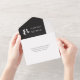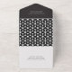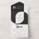 Estas divertidas invitaciones de boda todo en uno presentan un diseño de estilo deco vintage en blanco y negro. Sus invitados pueden ir a r.s.v.p con la sección de desgarro de la predirección. El texto de la invitación incluye los marcadores de posición para los nombres de las parejas bodas, la fecha del boda, la hora, el lugar de celebración, la dirección del lugar de celebración y la información de recepción. El frente tiene un patrón de flores con los corazones como sus centros. La sección R.S.V.P incluye una solicitud de fecha de respuesta, nombre de invitado, aceptación, número de invitados, declinación, instrucciones de opción de entrada con tres opciones de selección.