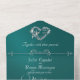 This romantic design features a teal background embellished with, a delicate silver scroll heart and script in elegant fonts. Perfect for the simple to most elegant wedding. Also available with different colored backgrounds for your wedding theme colors. Designed to coordinate with the "Romantic Scroll Hearts & Calligraphy" Wedding Collection. To change details, click «Personalize». To move the text or change the text size, font, or color click «Click to customize further»