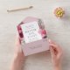 Elementos: Rosas y peonías sobre un fondo rosa polvoriento. Los detalles están enmarcados en un marco geométrico moderno. Las fuentes sans serif modernas se utilizan para un aspecto limpio. Colores: rosa polvoriento, burdeos, marsala, morera, rubor, malva, crema, ciruela, verde. Temas: romántico, botánico, boho, natural, jardín encantado, vintage, campo. Jardín bohemio. Colección: Romántica colección de Bodas de cuadros modernos Peony Rosa. Tipo de producto: Invitaciones de boda todo en uno