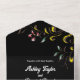 Esta elegante invitación a la boda floral es perfecta para un boda floral moderno. El diseño es sencillo, con una acuarela de rosa rojo y hojas verdes con una elegante tipografía blanca sobre un fondo negro.