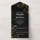 Invitación Todo En Uno Rosa acuarela simple deja Boda floral negro