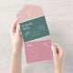 Invitación Todo En Uno Rosa agitado verde esmeralda simple Boda moderno