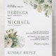 Sorprenda a sus invitados con esta elegante invitación de boda que incluye flores rústicas y tipografía moderna con el código QR para RSVP en línea. Simplemente agregue los detalles de su evento en esta plantilla fácil de usar para convertirla en una invitación única.