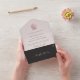 Una simple concha de vieiras de Relieve metalizado de imitación dorada y una clásica fuente gris contra un fondo rosa de polvo de moda adornan esta sencilla y elegante invitación a la boda. Tarjeta inversa a un gris oscuro coordinado que puede cambiarse a cualquier color para que coincida con el color de tu boda en la playa. Perfecto para bodas de temática oceánica o playera o para celebraciones en una ubicación tropical o costera.