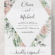 Dusty Rosas de flores rosadas y Eucalyptus Boda de acuarela de vegetación botánica primavera o invitación a la boda de verano y RSVP - incluye una bella y elegante tipografía de escritura con flores botánicas tropicales modernas y vegetación para la celebración especial del Día de la Boda.