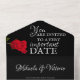 La tarjeta de invitación a la boda gótica está diseñada para ser elegante y misteriosa. Es completamente negro y tiene un aspecto elegante. El tipo de letra está en un tono gris delicado, casi blanco, que contrasta con el fondo oscuro. En la parte inferior, una rosa roja y un poco de sangre se encuentran en una pequeña piscina, lo que le da a la carta un toque misterioso y algo oscuro. El rosa simboliza el amor y la pasión mientras que la sangre representa la profundidad de las emociones. En general, la tarjeta genera cierto drama e intensidad que inmediatamente atrae la atención del destinatario. Es perfecto para parejas que buscan una invitación de boda única y poco convencional.