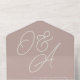 Una hermosa tipografía basada en una invitación a una boda monograma con sus iniciales en letras de guiones sobredimensionadas en la parte superior, en tono de tonos para un efecto de marca de agua. Personalice los detalles de su boda con letras clásicas de serif alineadas en la parte inferior derecha. El colorway Rosa Taupe es una elegante mezcla de rosados neutros tierra, con letras blancas cálidas y clásicas sobre un fondo de color rosa. La tarjeta RSVP adjunta y el estilo plegable hacen de esta invitación todo en uno una opción atractiva.