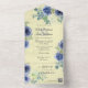 Invitación Todo En Uno Rosas azules e marfileños en amarillo pálido con c