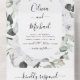 Rosas florales blancos y Eucalyptus Invitaciones RSVP Boda Primavera o Boda de Verano - incluye tipografía de escritura hermosa y elegante con flores botánicas tropicales modernas y vegetación para la celebración especial del Día de la Boda.