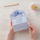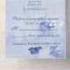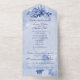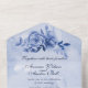 Esta es una invitación de boda hermosa y elegante llamada "todo en uno" que contiene una tarjeta de respuesta desprendible que se puede enviar de vuelta con su respuesta. Rosas de acuarela azules y acentos. Todo es personalizable, incluyendo fuentes de texto, colores y fondos