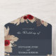 Simplifica tu papelería de boda con esta elegante Invitación Todo en Uno de Rosas Borgoña y Hierba de la Pampa. Con rosas rojas profundas, suaves acentos de pampas y un fondo azul marino sombrío, este diseño combina belleza y comodidad en una sola pieza. El formato plegable incluye la invitación de boda, área para la dirección del invitado y una tarjeta de RSVP desmontable con borde perforado, sin necesidad de sobres adicionales. Perfecta para bodas modernas, boho y rústicas, esta suite de invitaciones es tan práctica como romántica.