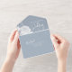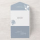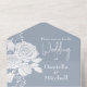 Invitación Todo En Uno Rosas en una invitación de boda con un azul turbio