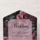 Esta invitación incluye rosas góticos en malva, gris y negro. Es excepcionalmente diferente y apropiado para los asuntos formales y semiformales. Las invitaciones de boda todo en uno son hermosas y prácticas al combinar la invitación de boda con una postal RSVP fácil de quitar perforada. También son rápidos y fáciles de preparar para el correo. Simplemente dirija la invitación, doble el pliegue trasero y selle con los pegatinas claros incluidos. Una vez que sus invitados reciben la invitación, simplemente rompen la tarjeta RSVP perforada y la tiran por correo. La adición del código QR permite a los clientes acceder fácilmente a la página web de su boda para obtener información, incluyendo detalles de recepción y opciones de cena.