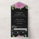 Rosas acuarelas de color negro en flor invitación a la boda All In One. Personalice el texto y los colores para que esta invitación sea la mejor para usted. Reduzca la cantidad de tarjetas que necesita enviar personalizando y enviando todo esto en una sola invitación, respuesta desgarradora de RSVP por fecha y elección de comida.