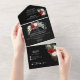 Invitación Todo En Uno Rosas rojas y blancas de Borgoña en Boda negro