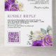 Invitación Todo En Uno Royal Purple Roses Floral QR Code Wedding
